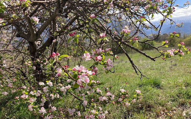 24 APRILE 2022 – Se ne sta ai margini di una delle tante strade che convogliano il traffico sulla variante a quattro corsie. E’ l’effetto postumo della cura di contadini di un tempo e dimostra tutti gli anni nelle scarmigliate ramificazioni senza più guida. I frutti si saranno inselvatichiti ed inaspriti; ma i fiori che non rinunciano all’appuntamento di aprile sono quelli di una volta, di sempre. Sta più dalla parte delle case che di Villa Sardi, un tempo confine estremo del contado ed oggi circondata dall’edilizia fagocitante. Potrebbe essere un monumento all’agricoltura che fu, quella dell’epoca dell’ecologia inconsapevole.