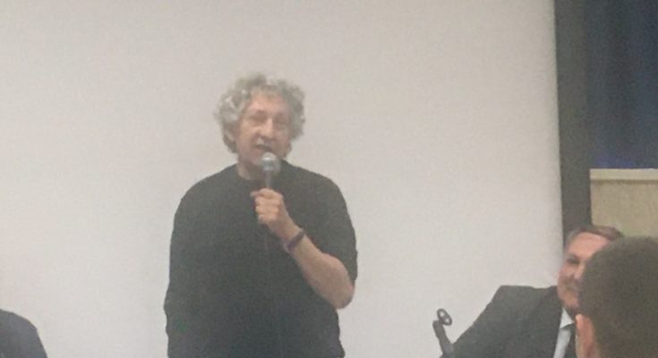 22 febbraio 2020 – Eugenio Bennato ha il garbo di quelle persone napoletane che cercano prima di tutto di mettere a proprio agio l’interlocutore e, quando sono ospitate, non parlano delle proprie cose e della propria storia. Ospite dei ragazzi del Liceo Scientifico “Fermi” di Sulmona, ha detto loro che “è una responsabilità essere nati nello stesso posto nel quale nacque un artista assoluto, forse il più grande poeta della Romanità, come Ovidio”, perché, tanto per fare un esempio, si deve a lui se “un altro genio come Caravaggio è riuscito a tratteggiare la figura di Narciso, esprimendone tutto l’atteggiamento psicologico che si percepisce quando si leggono le Metamorfosi”. Per questo collegamento e per questa lettura tramandata attraverso i millenni l’arte può permeare l’uomo e può contribuire alla sua cultura. Eugenio Bennato non ha inondato subito i ragazzi del “Fermi” con i ritmi per ascoltare i quali loro hanno riempito l’aula magna, oppure con i contenuti che il loro dirigente, prof. Massimo Di Paolo, ha trovato di assoluto rilievo per scrivere una Storia autentica e priva di pregiudizi. Il cantautore Eugenio Bennato, dottore in Fisica, dopo aver letto l’intestazione del Liceo di Sulmona a Enrico Fermi, ha spiegato come lo scienziato che tutto il mondo invidiò all’Italia tra le due guerre avesse scoperto i neutrini; sostanzialmente per la conseguenza di una osservazione sulla “dispersione” di carica elettrica dagli elettroni.