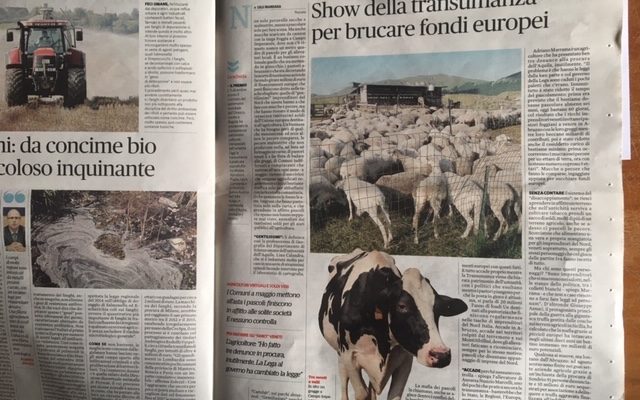 13 GENNAIO 2020 – Una intera pagina del “Fatto quotidiano” di oggi è dedicata alla spinosa questione dell’affitto dei pascoli d’Abruzzo a società del Nord che riescono a percepire contributi europei. Del fenomeno si interessarono anche la trasmissione di giornalismo d’inchiesta TV7 della Rai e l’europarlamentare Cozzolino, che ne fu sensibilizzato dal nuovo corso del Pd locale, non appena cacciato Bruno Di Masci dal partito.