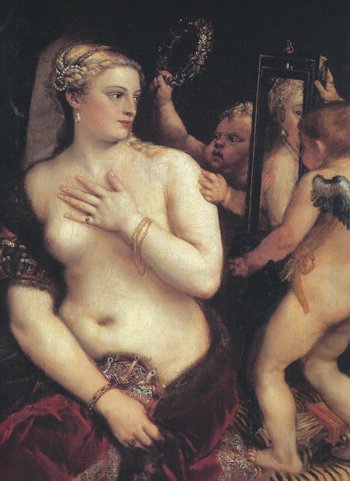 Davvero Ovidio con le sue “Metamorfosi” ha cercato un contatto con il mito fondante di una civiltà, non solo con le favole e con il gusto delle classi dominanti di veder celebrato la loro ambiziosa creazione. (Nella immagine in basso: “Venere allo specchio” di Tiziano, sul motivo delle Metamorfosi di Publio Ovidio Nasone)