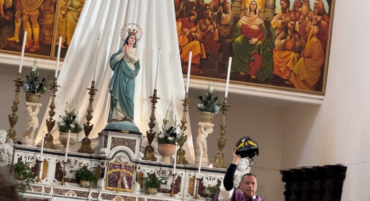 7 DICEMBRE 2025 – Ha inserito tra le “fake news” la voce sulla soppressione della Diocesi di Sulmona don Gilberto (nella foto del titolo mentre elogia il servizio dei Vigili del Fuoco per Santa Barbara) nel celebrare messa a San Francesco stamane (si è anche scusato per l’uso di termine straniero). Ha aggiunto che, prima di dispiacersi per questa “fake”, è necessario vivificare le istituzioni religiose che si fondano sulla partecipazione dei fedeli.