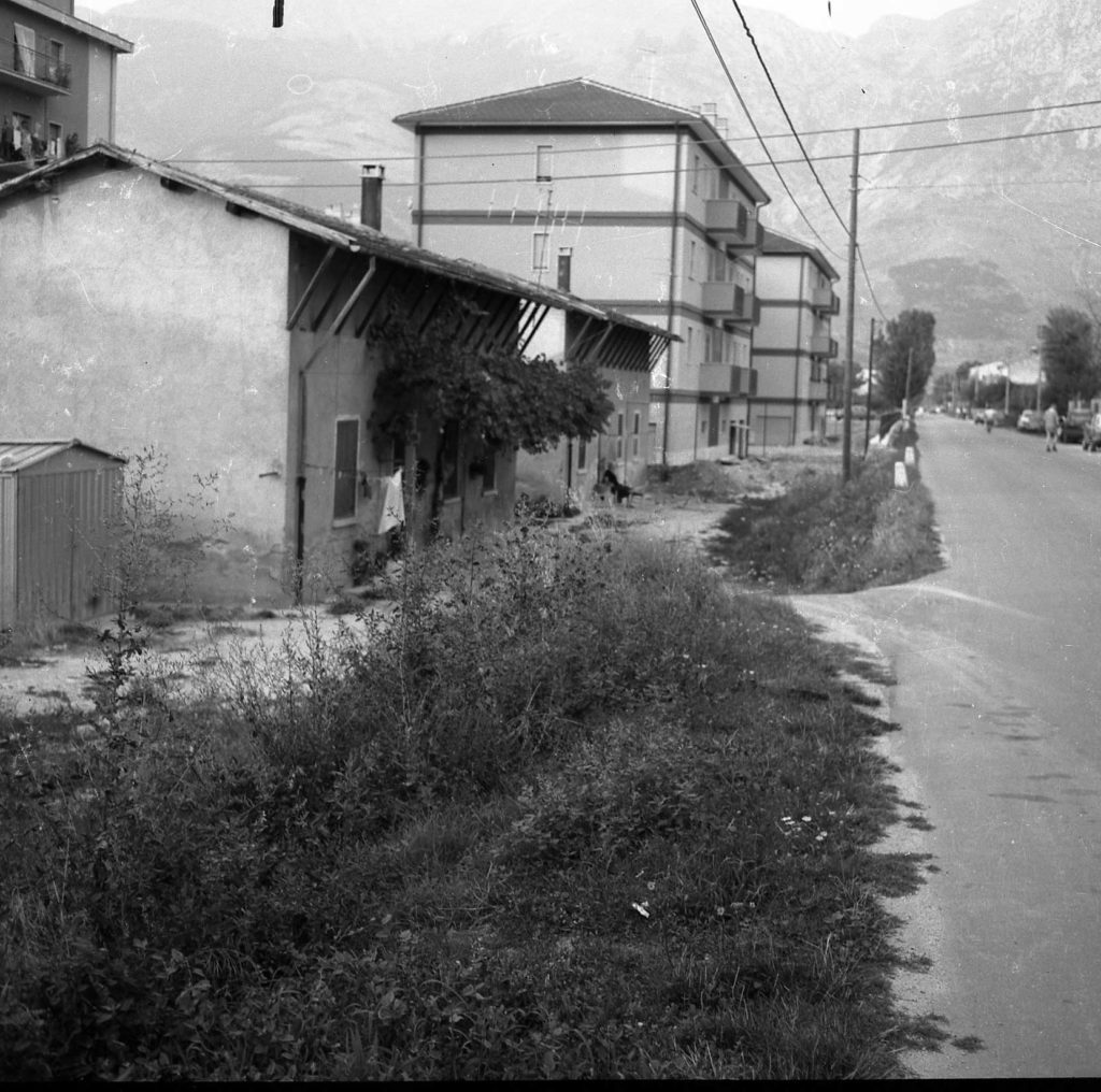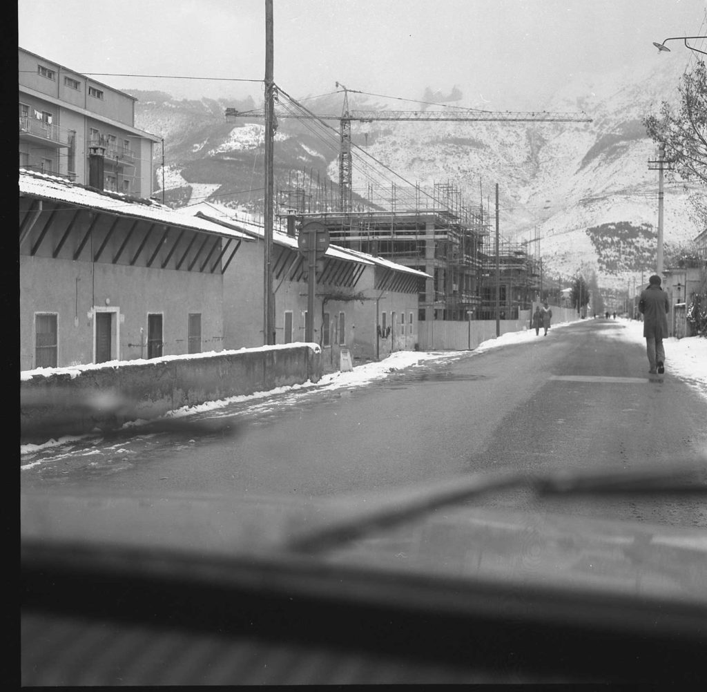 Quartiere dormitorio, si disse; e molto vicino al “Villaggio D’Annunzio” che si trovava lungo la Via Cappuccini ed è ripreso in quest’altra foto e in quella in fondo, con la rigida giornata invernale innevata, sempre degli anni Settanta
