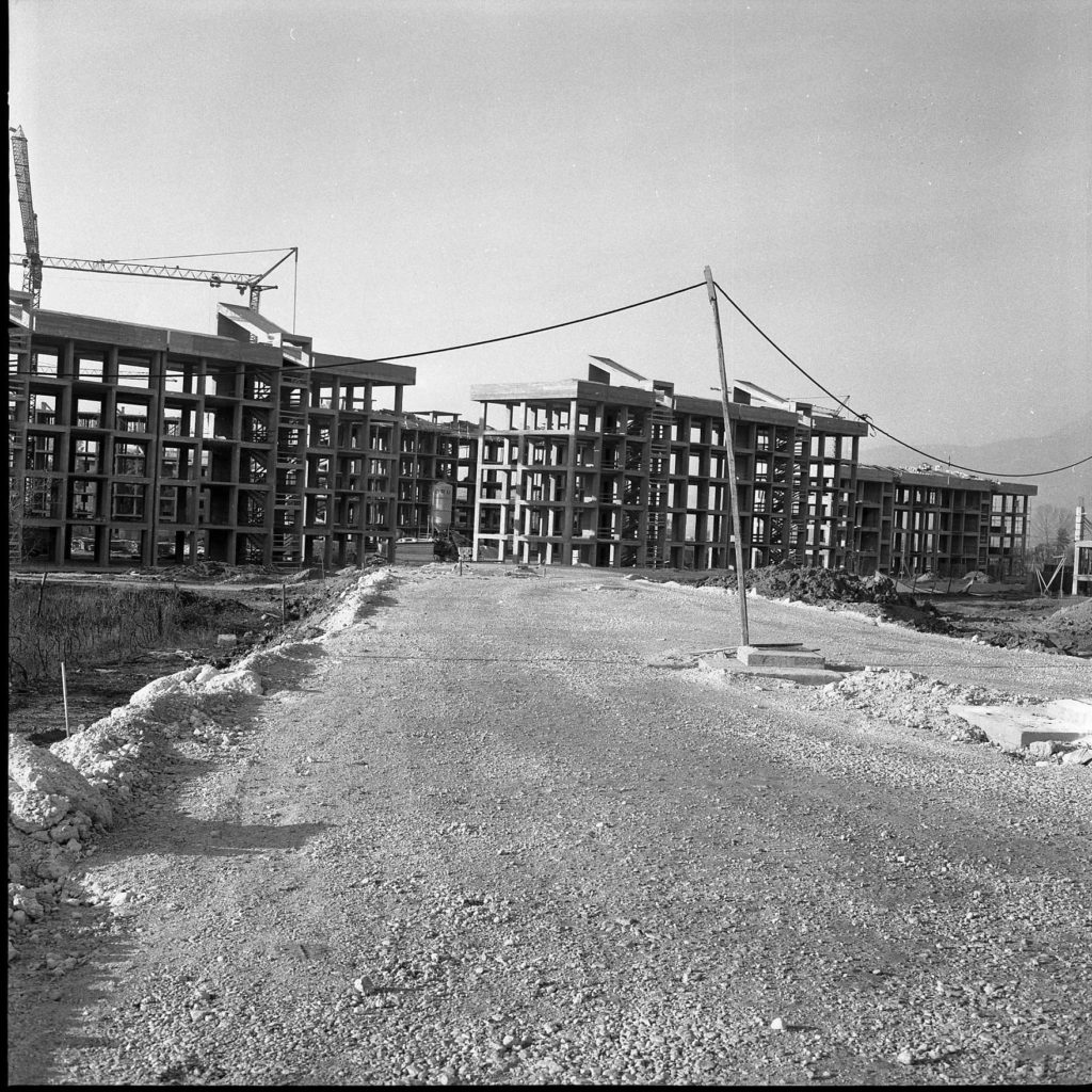 I palazzi della zona PEEP con la costruzione in corso degli alloggi delle cooperative