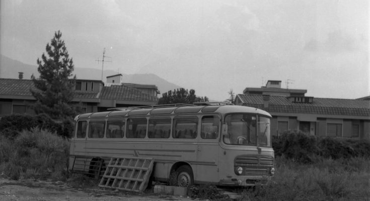 21 APRILE 2020 – Sembra una periferia in bianco e nero di quelle che a Roma erano il teatro delle opere di Pasolini. Questa corriera (foto del titolo) se ne stava abbandonata a pochi metri dal Villaggio Italia e dalle palazzine che tumultuosamente setacciavano la zona ad est della città per affiancarsi ai terreni subito dopo trasformati nei quartieri della zona PEEP (in questa foto).