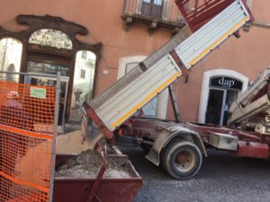 27 MARZO 2019 – I lavori di pavimentazione (sostituzione del porfido) che nel 2010, alla vigilia della visita del Papa, durarono qualche giorno, hanno già superato le due settimane e non sono ancora finiti. Per giunta, rischiamo di sollevare aspre reazioni per il materiale che dovrebbe sostituire la pietra del cordolo che divide il Corso Ovidio da Piazza XX Settembre. E’ stata rimossa e, secondo quelli che protesteranno domani con il Sindaco e poi sul cantiere, sarà sostituita dal travertino, cioè da un materiale che non è proprio consono ad una città medievale come il centro storico sulmonese. Tra l’altro, il travertino è scivoloso.