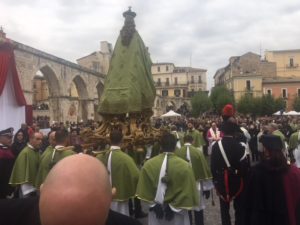 21 APRILE 2019 – Le immagini riprendono i preparativi due ore prima della corsa della statua della Madonna e, poi, il commiato della stessa statua che si avvia a lasciare Piazza Garibaldi
