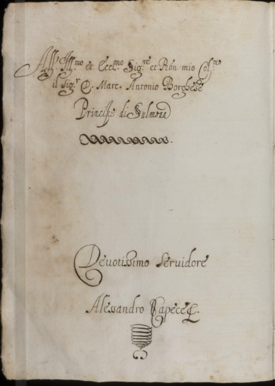 Una dedica al Principe Marcantonio Borghese del madrigalista Alessandro Capece, attivo nella Chiesa dell’Annunziata a Sulmona (il documento è frutto delle ricerche sulla storia musicale di Sulmona a cura del maestro Valter Matticoli)