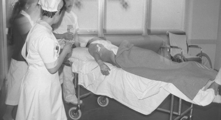 18 MAGGIO 2019 – Aveva tentato una rapina in treno, lungo la linea tra Sulmona e L’Aquila nei pressi di Molina Aterno, ma si era ritrovato lungo la traiettoria dei proiettili dei Carabinieri e le foto lo riprendono mentre viene trasportato d’urgenza nella sala operatoria del “Santissima Annunziata”. Non è roba recente, risale al 1977, ma le immagini sono fresche come poche altre nei reportage di cronaca nera che invadono le cronache di questi giorni, fatti per lo più di foto di archivio delle auto della polizia, o di pistole in primo piano (peraltro riprese dalle armerie muffite) o, peggio, di volti di persone sfigurate con il photo-shop per renderle irriconoscibili.
