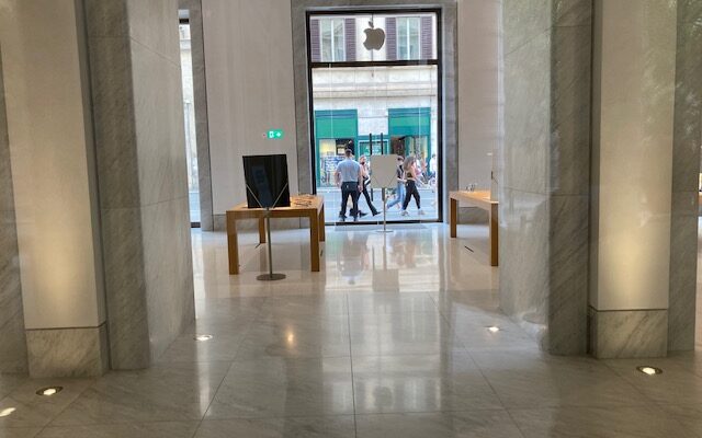 Insomma tutto ha seguìto le regole del rispetto della Storia e della vocazione culturale del… sito. Viene da pensare che più le idee sono nuove e più sanno collocarsi nella scia delle antiche. L’Apple Store di Via del Corso a Roma è il più grande d’Europa; e si vede, perché quello di Londra, al confronto, sembra una bottega. Contiene tutto il Caffè Aragno (l’Alemagna per un certo periodo) e l’enoteca sfarzosa degli anni Settanta messi insieme, più tutto il primo piano e il cortile. Ci si imbatte addirittura in un luogo intitolato ad Arcade; e viene da dire che nessuno si meravigli, visto che stiamo dove prima si veneravano gli dei governati dal Dio supremo, proprio il padre di Arcade, che concupì la sventurata Callisto.
