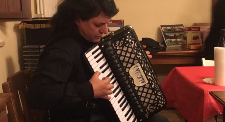 Però il suo funerale è stato depredato della componente secolare, come fosse stato quello di un pregiudicato e di un giovane rampante con collusioni infelici. Se ci fosse stato da porgere l’estremo saluto a qualche incallito delinquente, allora vietare il funerale “ricco” avrebbe avuto un senso. A Santo Stefano, il giorno dopo Natale, Santino Spinelli, che è anche titolare di cattedra universitaria (nella foto del titolo mentre suona “Oci ciornie” una settimana fa), ci ha raccontato che conserva rapporti a Sulmona con i Di Rocco; certo non è detto che avrebbe suonato, ma chissà se nell’occasione non avrebbe fatto una eccezione. Lui ha suonato davanti al Papa; forse questo questore gli avrebbe vietato di suonare davanti ad un parroco…