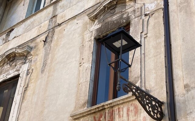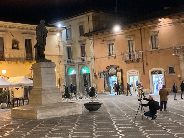 11 FEBBRAIO 2022 – Molte sono le emergenze scaturite da cinque anni di barbarie al Comune. Si potrebbe cominciare dall’arredo urbano con la sostituzione immediata delle false lampade che sostituirono quelle dal tono antico. Questo accostamento straniante di lampione e di palazzo del tardo barocco lascerà di stucco anche i meglio disposti visitatori del dopo-Covid, all’epoca delle mascherine non più obbligatorie all’aperto e della rinnovata curiosità per le cose belle, come testimonia questa foto della ripresa con cavalletto nello scenario di Piazza XX Settembre dalla bella pavimentazione, dalla dignitosa illuminazione, dalla presenza di Ovidio.