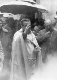 La benedizione avviene sulla pubblica via, tra vapori intensi, in modo sbrigativo, ma senza trascurare nulla: un’altra festa del ringraziamento, sentita più intimamente di quella sulle campagne di novembre. E un’occasione anche per vedersi e parlare uscendo dalla messa.