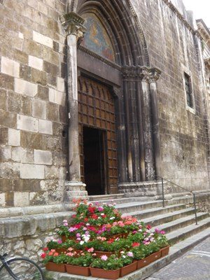 Fiori a San Francesco15 GIUGNO 2013 – Prima giornata di estate: e anteprima del turismo culturale, che quest’anno pare farà impallidire le statistiche degli anni precedenti, forse anche per l’invito di Vittorio Sgarbi a visitare Sulmona quale capoluogo delle città d’arte in Abruzzo in attesa di seri restauri e riparazioni a L’Aquila (a sinistra: gli scalini di San Francesco della Scarpa in Via Mazara).