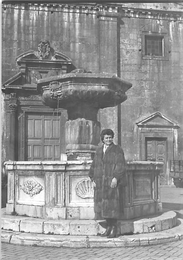La baronessa Gabriella Roesler-Franz Sanità davanti alla fontana in Piazza del Popolo a Pacentro