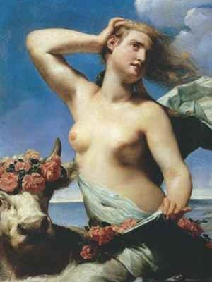 L’olio su tela è “Il ratto di Europa” di Guido Cagnacci, 1645 Collezione Molinari Pradelli