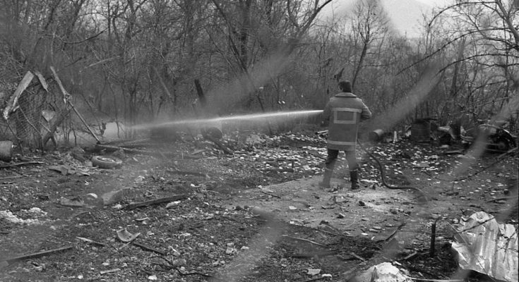 A Roccacasale negli anni Ottanta, poco dopo l’ora di pranzo, esplose un piccolo stabilimento per i fuochi di artificio. In un attimo le fiamme distrussero pure gli alberi e i fili d’erba del terreno, divorarono l’utilitaria dei padroni della piccola attività artigiana e, purtroppo, uccisero anche i coniugi che con tanta buona volontà proseguivano una tradizione piuttosto radicata a Pratola Peligna; tanto consolidata che gli spari si esportavano in tutte le feste patronali d’Abruzzo e di fuori Abruzzo. Quando ancora la terra fumava per il micidiale fuoco, giungemmo per un servizio fotografico che contenne in tutto una quindicina di scatti (si doveva risparmiare in pellicole), ma aveva il grande pregio di essere già concluso mentre sul posto arrivava la concorrenza del “Messaggero”.