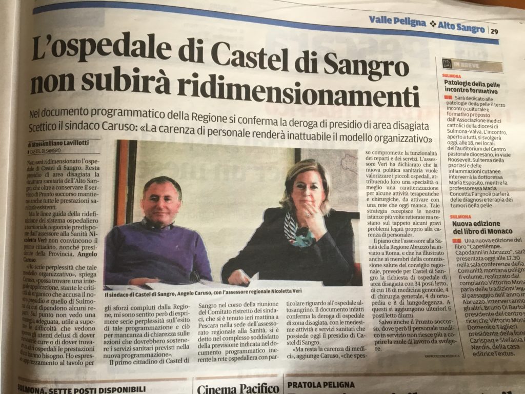 Nella pagina del “Centro” una delle battaglie che l’Alto Sangro ha dovuto affrontare sul versante della Sanità