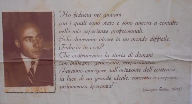 E’ stata colta una frase opportuna per proporre il ricordo di Giuseppe Bolino in un manifesto. Pensava ai giovani; e in modo concreto. Era così attento a trovare il contatto e a presentarsi loro senza tronfie proclamazioni, che riusciva anche a far superare la diffidenza che ogni giovane sano ed equilibrato nutriva verso la Democrazia Cristiana, coacervo di stanche strategie per spezzare il rinnovamento soprattutto dopo il 1968. Sapeva chiedere ad un giovane come si sentisse, quali fossero le sue aspettative; riusciva ad aggirare il protocollo dei contatti formali tra eletti e potenziali elettori. Non riuscì a farci votare DC, per insuperabili controindicazioni che la natura stessa del partito si portava dentro: prima di tutto lo sconcertante oltraggio ad ogni forma di meritocrazia, per il costante riferimento e la pratica attuazione delle raccomandazioni dappertutto, anche nel mondo apparentemente incantato e sbarazzino del giornalismo. Ma, questo va detto per valorizzare la sua onestà, non ci chiese neppure di votare DC.