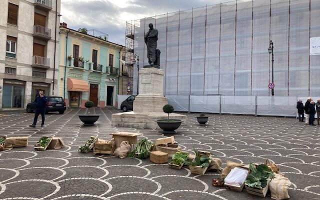 20 DICEMBRE 2022 – Non siamo noi ad avere le traveggole. E non è, qundi, neanche un altro allestimento di Fabio Spinosa Pingue, esperto di ortaggi sulla testa di Ovidio, o di “Fabbricacultura” di Anna Berghella. Questa è verdura ai piedi del Vate: il che non cambia molto…