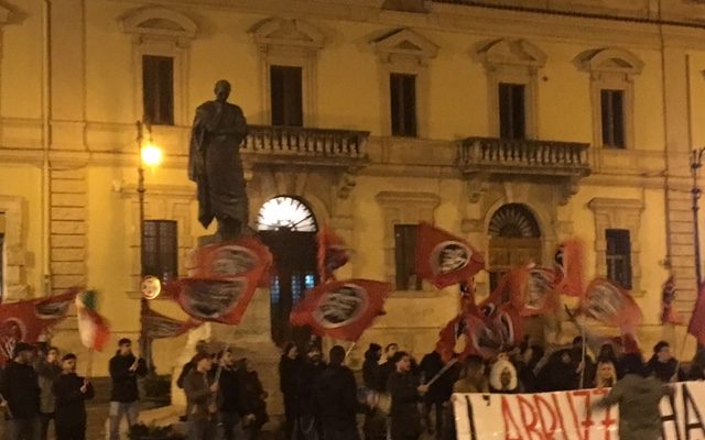 La manifestazione di sabato sera con le bandiere di CasaPound