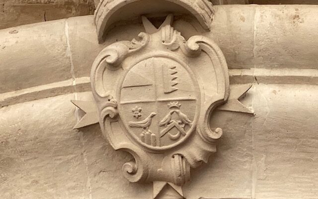Nella foto del titolo lo stemma nobiliare dei Sardi de Letto e nella foto in basso il portone del palazzo in Largo Francesco Sardi de Letto