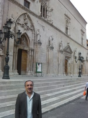 4 SETTEMBRE 2012 – Conosciuto al grande pubblico per la sua magistrale interpretazione nel “Caos calmo” di Moretti, oppure nel “Papà di Giovanna”, Silvio Orlando si gode una passeggiata lungo il Corso e davanti al Palazzo dell’Annunziata, sorpreso per tanta ricchezza di espressioni artistiche, accenna al paragone che gli viene più spontaneo: quello con l’arte di Lecce. Chiede se quella sia la chiesa più importante di Sulmona e, quindi, se è la cattedrale, come viene in mente a tutti, un po’ per la collocazione, un po’ perchè è difficile immaginare che un’altra composizione architettonica possa superarla. Ed infatti niente supera, per arte e dovizia di rifiniture, il Palazzo dell’Annunziata, come annotava un altro ospite occasionale, Ugo Ojetti, direttore del Corriere della Sera (“Tre porte e tre finestre più belle d’Italia”, nella sezione “VISTI DAGLI ALTRI” di questo sito).