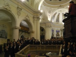 31 MARZO 2019 – E’ un coro centenario, esegue brani di impronta medievale, ma si rinnova in gran parte per l’adesione di elementi giovani o giovanissimi: tra i 14 e i 21 anni si registrano i maggiori afflussi per il Coro del Miserere. Non è un fenomeno parrocchiale; non è un fenomeno di una Arciconfraternita (che pure sarebbe un modo di essere di tutto rispetto, viste le… estensioni in vari ambiti di interessi che le confraternite hanno sempre avuto e hanno): è il coro di una città, perché per l’83% è composto di persone che non appartengono ad alcuna confraternita. Insomma, è diventato espressione sociale, che meritava uno studio e che è stato studiato, con tanto di statistiche, dal prof. Pasquale Di Giannantonio.