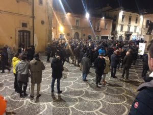27 GENNAIO 2019 – Dalle previsioni si sarebbe pensato che Piazza XX Settembre sarebbe stata piena come un uovo per il comizio di Matteo Salvini; se si tolgono un paio di centinaia di poliziotti e carabinieri; se si considera lo spazio del palco vicino al Liceo e si considera lo spazio occupato dal palco mobile della Lega, collocato vicino alla banca; se si guarda ai macroscopici vuoti (come quello ripreso nella foto), l’adunata indetta dalla Lega per sostenere il candidato Marsilio è stata piuttosto deludente in quanto a partecipazione popolare. Visto che si è spostato tanto verso il Sud, almeno Salvini poteva prendere esempio da un napoletano davvero trascinatore, quel Tommaso Aniello, detto Masaniello, che in quanto ad astuzia e presa popolare dava quattro punti e una scopa ai “mangiapolenta” del Nord.