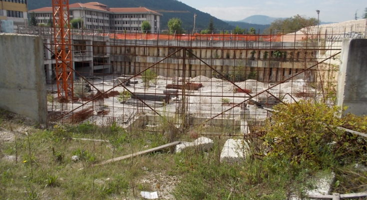 DSCN006719 SETTEMBRE 2014 – Se fino all’anno scorso i lavori per la nuova ala del tribunale dell’Aquila procedevano a rilento, adesso non si vede traccia di trapano, di tondino, di tavelle.