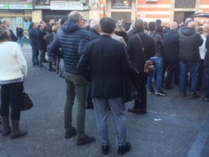 7 NOVEMBRE 2018 –Ultime ore a disposizione per vincere la gara ad indovinare il “chi è” per il personaggio ripreso più volte alle spalle. Oggi veste in lutto, ma non perde un grammo di eleganza. Non è un lutto da becchino, perché si spezza con una tonalità acconcia nei pantaloni e riprende un nero lucido con scarpe importanti.