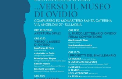 DOMENICA SARA’ INAUGURATO L’UBI CONSISTAM DEL SULMONESE 16 MARZO 2022 – Domenica prossima, che sarebbe stato il compleanno di Publio Ovidio Nasone, sarà...