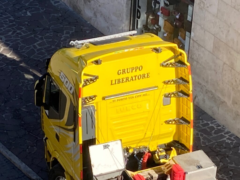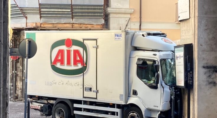 13 FEBBRAIO 2023 – Poteva finire in tragedia; e meno male che non c’è neppure un ferito grave. Così, dello strano impatto di un furgone contro i portici si possono cogliere gli aspetti ameni. Per esempio, il tir usato per il recupero della carcassa: “Ti porto via con me” è scritto sulla cabina. E in effetti non c’è allusione più giusta di questa promessa per i camion del soccorso stradale. Meno ritagliata al caso è la scritta sul furgone incidentato, che abbina il prodotto con la gioia. Insomma… non proprio, viste le conseguenze…