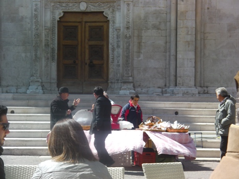 Nella foto del titolo: una piccola fiera, il giorno prima della Pasqua 2012, davanti al Palazzo dalle…finestre più belle nel loro stile in Italia.