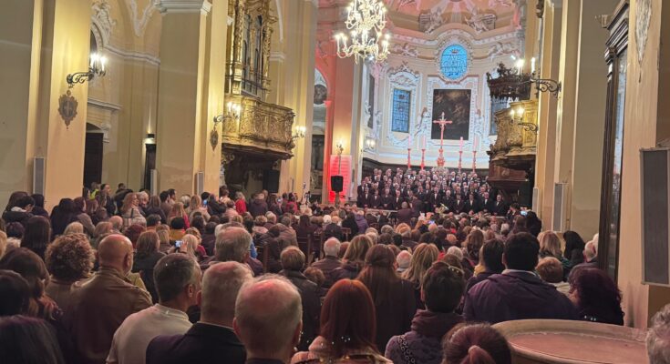 14 APRILE 2025 – Poderosa esecuzione ieri (nella foto del titolo) che ha fatto tremare i vetri dei lampadari e vibrare le poche canne d’organo rimaste dei tre impianti nella Chiesa dell’Annunziata a Sulmona. Era una prova del Coro del “Miserere” della processione di Cristo Morto, ma è stata una anticipazione delle invocazioni dei 100 e più coristi lungo le vie e le piazze cittadine.
