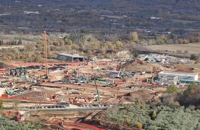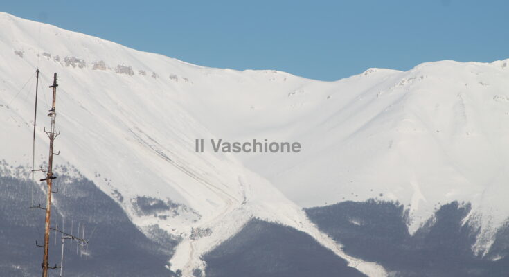 4 APRILE 2026 – Dalle “cattedrali” (le alte pareti rocciose) fino alle faggete più in quota, per poi penetrare nei boschi e (forse) progredire più lentamente. Questa la “Y” verso valle che una imponente slavina ha segnato sulla Majella e che il sole smagliante di oggi rende visibile dopo la copertura nuvolosa di intere settimane. La quantità di neve e di sassi che si è staccata dalla parete a sud del Monte Majella è stata di tale portata che, come si vede nella foto del titolo, ha lasciato scoperta un’ampia striscia di terreno.
