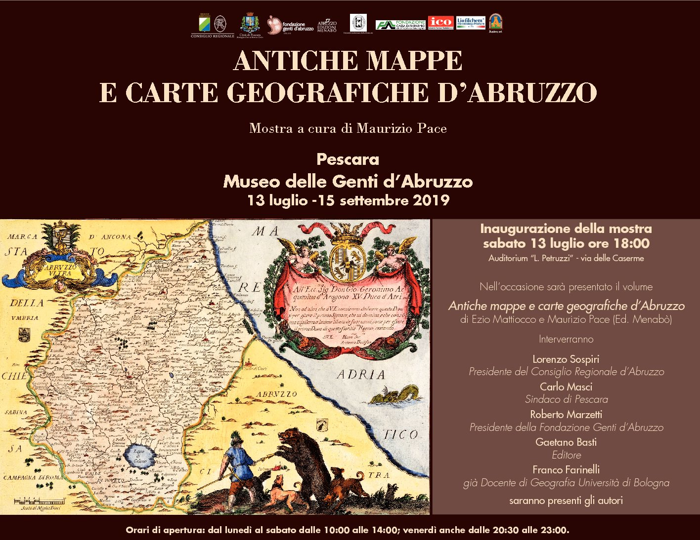 11 LUGLIO 2019 – Sarà inaugurata sabato alle 18 al Museo delle Genti d’Abruzzo a Pescara e rimarrà aperta per due mesi la mostra “Antiche mappe e carte geografiche dell’Abruzzo”; e consentirà la presentazione di un volume dello stesso titolo, realizzato da Ezio Mattiocco e Maurizio Pace. I saluti saranno rivolti da Lorenzo Sospiri, presidente del consiglio regionale, e Carlo Masci, sindaco di Pescara.