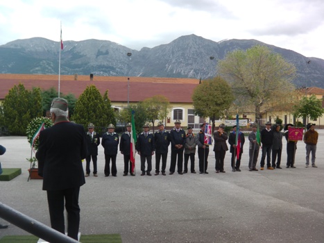 22 APRILE 2012 – L’ultimo della componente “peligna” della Divisione Acqui, reduce dalle terribili giornate di Cefalonia, Angelo Pasquale di Prezza, è morto qualche mese fa e si è portato nella bara quelle mostrine gialle e nere che avevano segnato la morte per tanti commilitoni, migliaia di ragazzi come lui poco più che ventenni, lasciati allo sbando dopo l’8 settembre 1943. Nella foto del titolo il gen. Italo Giammarco parla nel corso della cerimonia: davanti a lui le associaZIoni combattentistiche e d’Arma e in particolare i finanzieri dell’Anfi (era tenente della Regia Guardia di Finanza il sulmonese Ciancarelli ucciso a 22 anni a Cefalonia)