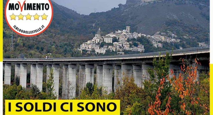 Nella foto-manifesto dei 5 Stelle il viadotto di Cocullo lungo la A25