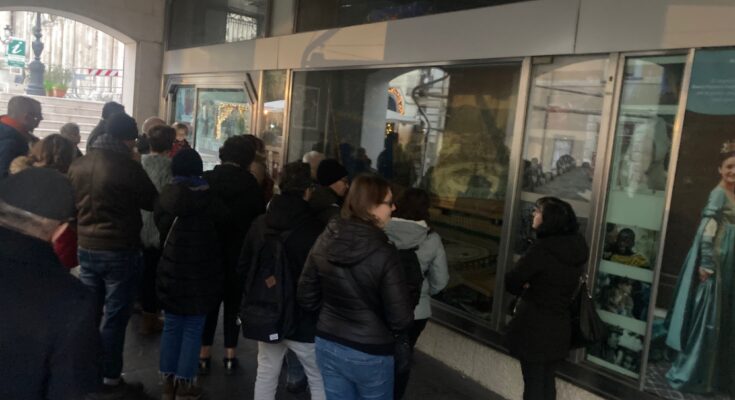 27 DICEMBRE 2022 – Continua il nostro viaggio nelle oscurità della Sulmona turistica. Oggi tocca ai portici prima dell’Annunziata (che si intravede nello sfondo). Anche qui una volenterosa guida illustra le belle foto esposte nelle vetrine di quella che fu la Cassa di Risparmio della Provincia dell’Aquila; ma chi le vede è bravo. Per sentirsi immersi nell’atmosfera di Piazza Maggiore costellata di cavalieri e dame e “messeri” (come vengono chiamati), il turista deve fare uno sforzo di immaginazione. Sarebbe bastato un faro, una piccola luminaria adatta all’uso per dare una mano alla guida.